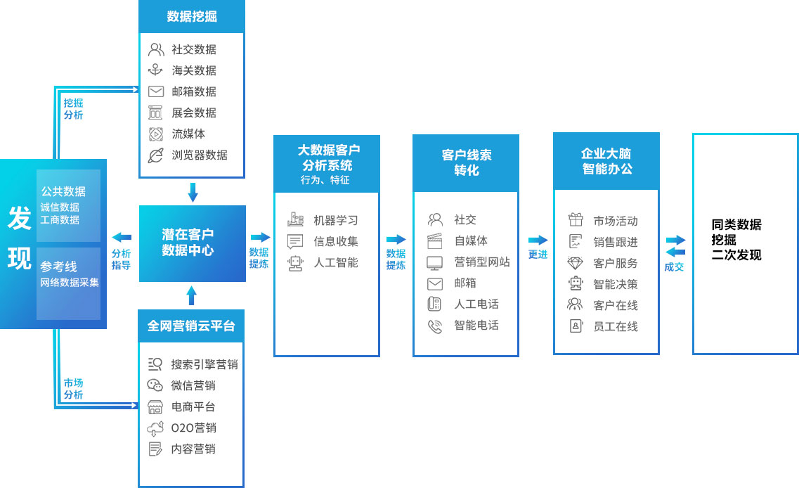 隨著大數(shù)據(jù)、云、移動互聯(lián)網(wǎng)、人工智能的蓬勃發(fā)展,精細化管理、精細化營銷、客戶管理、移動協(xié)同辦公都發(fā)生了巨大的變化,企業(yè)對智能化的管理、辦公需求越來越迫切,利用云計算使銷售在線、員工在線、客戶在線、供應商在線、數(shù)據(jù)在線,大大提高了企業(yè)運營效率。由CRM、SCM、SCRM、DSS、DI、KM、智能客服、機器人、實驗室、云通信、大數(shù)據(jù)可視化等組成的企業(yè)大腦應運而生!